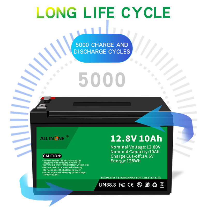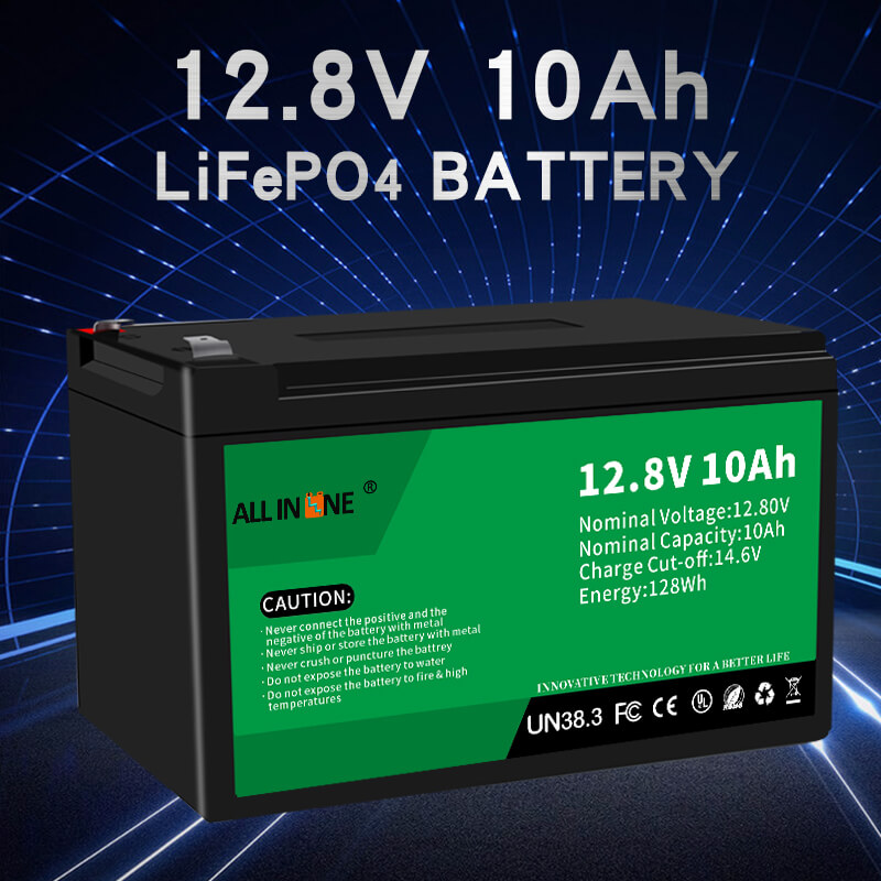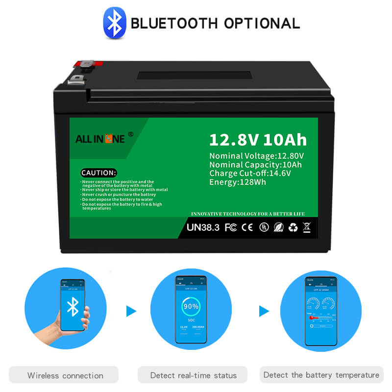Ova 12.8V 10Ah LFP baterija može biti savršena zamjena za AGM/GEL bateriju, ALLIN ONE također nudi prilagođene baterije različitog kapaciteta, dimenzija i funkcija prema specifičnim zahtjevima kupca.
