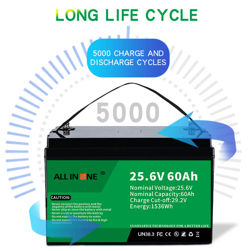 Ova 25,6V 60Ah LFP baterija može biti savršena zamjena za AGM/GEL bateriju, ALL IN ONE također nudi prilagođene baterije različitog kapaciteta, dimenzija i funkcija prema specifičnim zahtjevima kupca. U usporedbi s olovnim baterijama AGM/GEL, zamjenske otopine ALL IN ONE Li-ion (LiFePO4) imaju sljedeće prednosti: