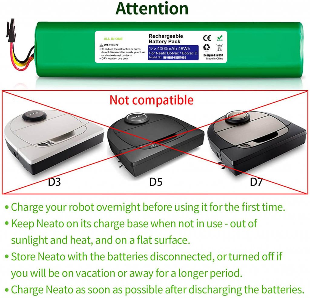 * Odspojite bateriju ili isključite uređaj kada spremate Neato. Molimo držite ćeliju pod kipom s pola napunjenosti, niti je napunite ili ispraznite ako je dugotrajno.