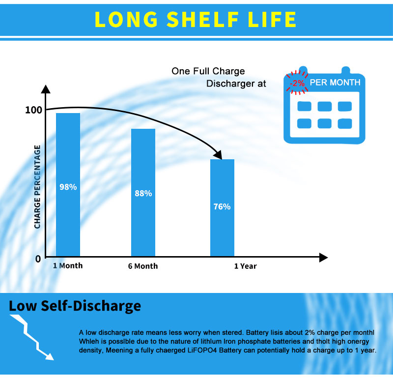 Nudimo dvogodišnje jamstvo za sve naše baterije. Osiguravamo životni vijek od najmanje 2000 ciklusa za LiFePO4 bateriju, što znači da će nakon 2000 @ 80% DOD-a i dalje ostati oko 60% kapaciteta.Možete ga koristiti barem 5 godina za normalno svakodnevno punjenje i pražnjenje.
