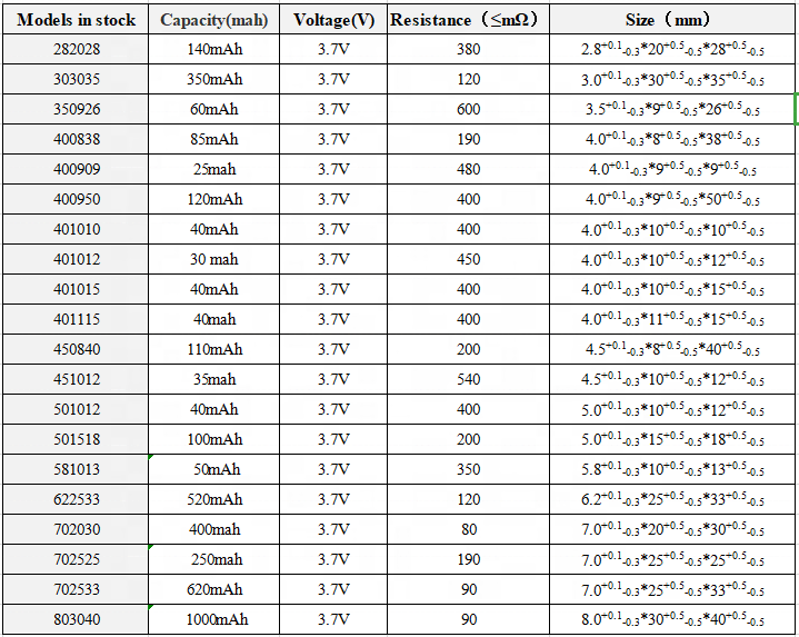 ime proizvoda | 581013 3.7V 50mAh polimerna litijeva baterija | Napomena | |