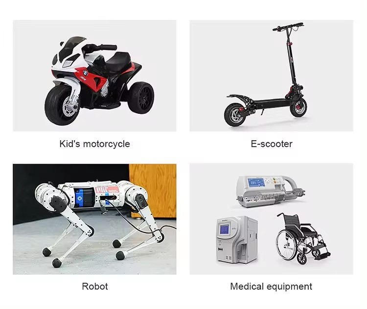 PVC litij-ionske baterije mogu se široko koristiti u električnim biciklima, električnim skuterima, robotima, medicinskim uređajima, električnim motociklima, električnim invalidskim kolicima, pohrani energije itd.