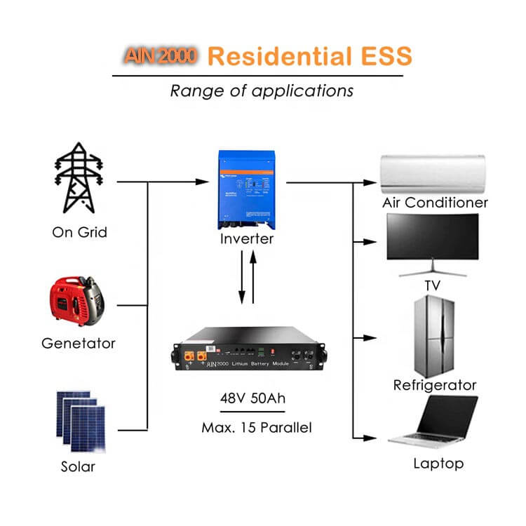1.AIN2000 48v baterija solarnog sustava razvijena je s LFP ćelijom 3.2V 50Ah i EV standardnom strukturom visokih performansi kako bi zajamčila sigurnost i izvanredan vijek trajanja.